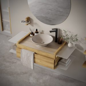 Oniva serisi; masif ahşap yapısı, modüler kurgusu ve bütünsel banyo çözümleri sunan ürün ailesiyle sürdürülebilir tasarım anlayışını temsil ediyor. Seride yer alan lavabo dolapları, boy dolapları, raf sistemleri, aynalar ve tamamlayıcı üniteler, doğal malzeme kullanımı ve uzun ömürlü yapı prensibi doğrultusunda tasarlanıyor. Üretim süreçlerinde CNC optimizasyonu ile atık miktarı minimize ediliyor, ortaya çıkan üretim artıklarının farklı alanlarda değerlendirilmesiyle döngüsel üretim yaklaşımı destekleniyor. Oniva serisi, yalnızca estetik ve fonksiyonel bir mobilya çözümü değil; aynı zamanda kaynak verimliliğini esas alan sürdürülebilir bir yaşam anlayışının banyo mekanlarına yansıması olarak konumlanıyor.