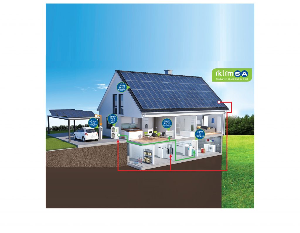 İklimsa, güneş enerji sistemleriyle birlikte ısı pompası, elektrikli araç şarj istasyonu ve güneşten üretilen enerjiyi 7/24 kazanca dönüştüren enerji depolama sistemlerini içeren entegre ve uçtan uca enerji çözümleri geliştiriyor. Güneş enerjisiyle üretilen elektriğin ısı pompası sistemlerinde kullanılması, konut ve işletmeler için önemli maliyet avantajı sağlarken çevresel sürdürülebilirliğe katkı sunuyor. Bu entegre enerji çözümleri, karbon salınımını azaltarak yüksek verimlilik ve uzun vadeli ekonomik kazanımlar sağlayarak kurumların stratejik enerji yönetimi hedeflerini destekliyor.