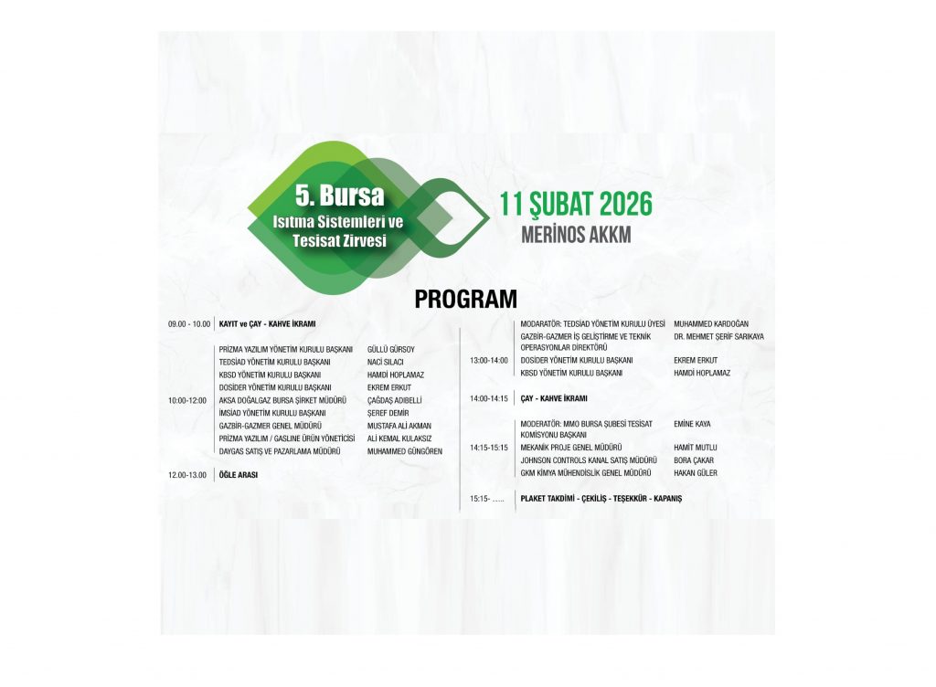 Bursa’nın sanayi ve enerji alanındaki güçlü konumuna katkı sunacak 5. Bursa Isıtma Sistemleri ve Tesisat Zirvesi, ısıtma ve tesisat sektöründe faaliyet gösteren profesyoneller için önemli bir değerlendirme ve istişare zemini oluşturacak.