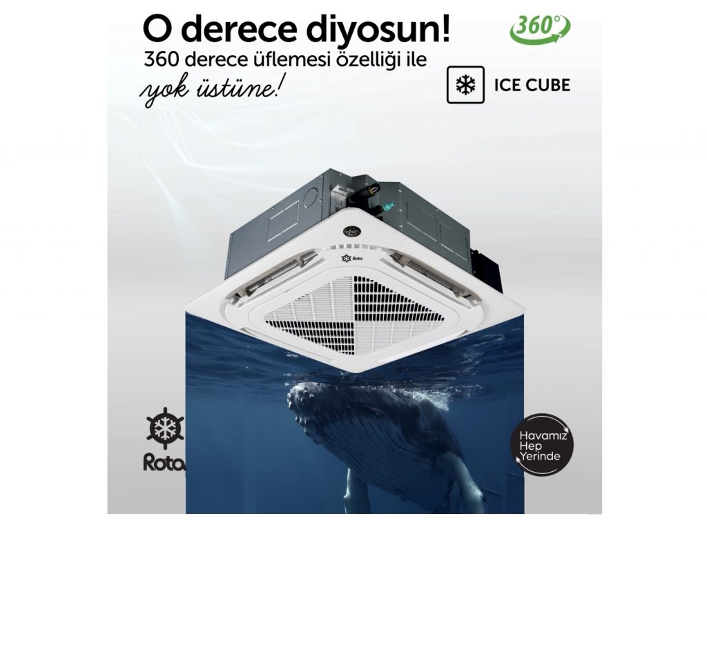 Rota Klima, konutlara, villalara ve ticari binalara yönelik geniş ürün yelpazesiyle sektörde öncü konumunu güçlendirmeye devam ediyor. Ticari klima ürün grubunda yer alan Rota Ice Cube 4 yön kaset klimalar; iş yerleri, villalar, geniş ofis alanları ve oteller için enerji tasarruflu ve yüksek performanslı iklimlendirme çözümleri sunuyor. Geniş hacimli mekânlar için özel olarak tasarlanan kaset tipi klimalar, estetik tasarımı ve güçlü teknik özellikleriyle dikkat çekiyor.
