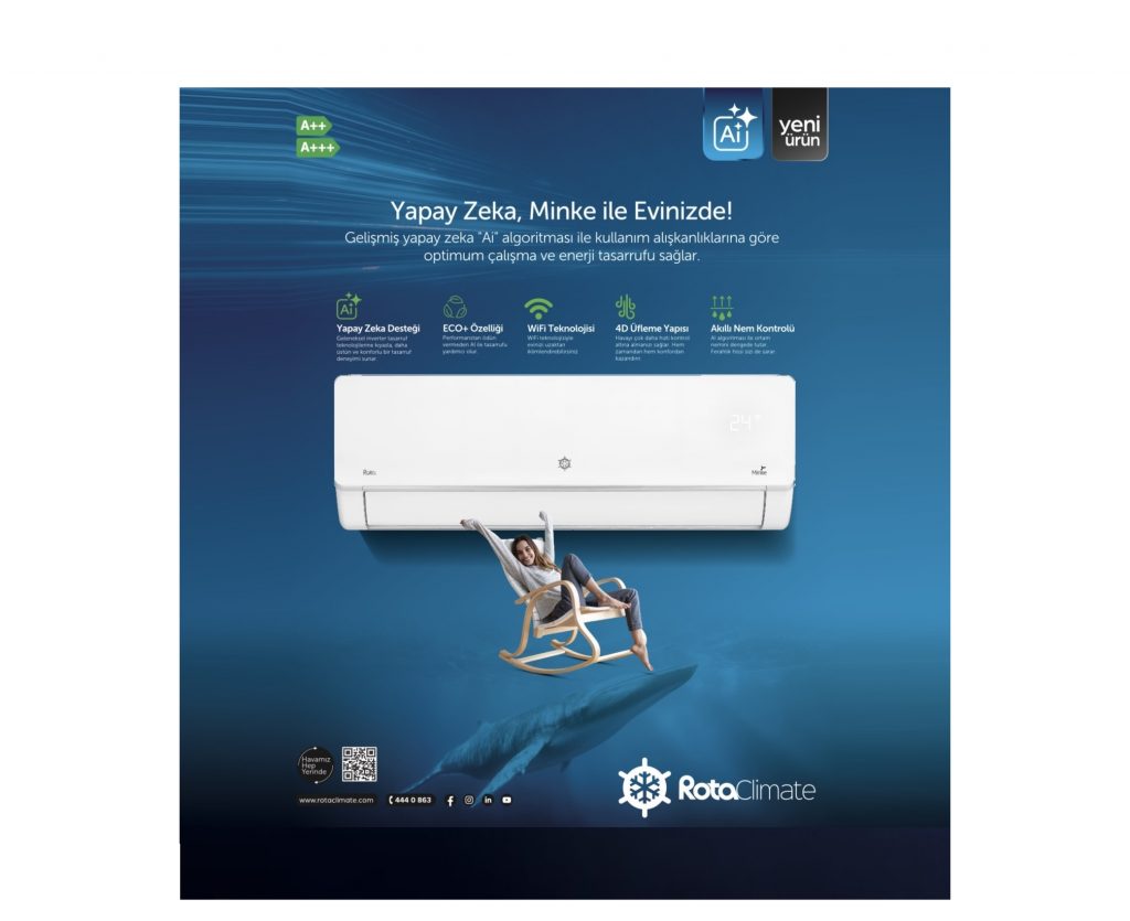 İklimlendirme sektöründe yenilikçi ürünleriyle öne çıkan Rota Klima, yapay zeka (AI) destekli yeni split klima modeli “Minke”yi Nisan ayında kullanıcıların beğenisine sundu. Gelişmiş teknolojilerle donatılan Minke, yüksek enerji tasarrufu, üst düzey konfor, maksimum hijyen ve ultra sessiz çalışma özelliklerini bir arada sunarak kullanıcı deneyimini yeniden tanımlamayı hedefliyor.