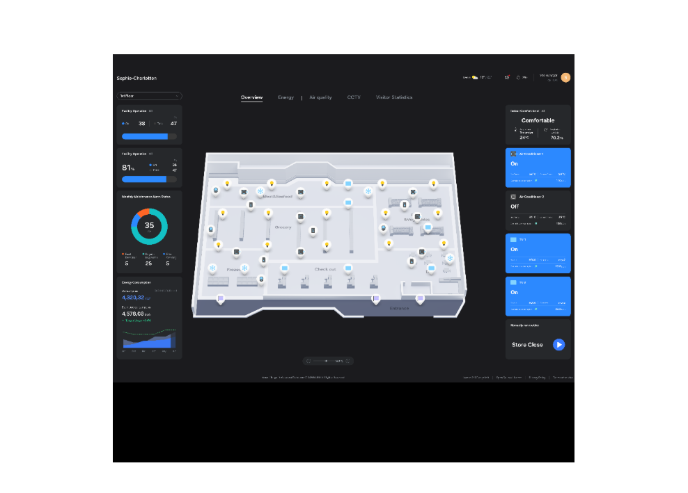 Platform ayrıca boş olmasına rağmen soğutulan odaları veya pencereler açıkken çalışan cihazları tespit ederek israfa yol açan kullanım alışkanlıklarını da algılıyor. Ayrıca, tesis yöneticileri uyumlu enerji sayaçlarını sisteme entegre ederek cihaz veya bölge başına enerji tüketimine ilişkin ayrıntılı bilgiler edinebiliyor.